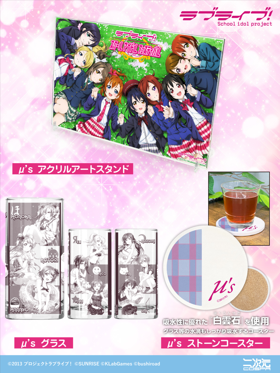 さらに、μ'sのメンバーたちをぐるっとデザインした「グラス」や