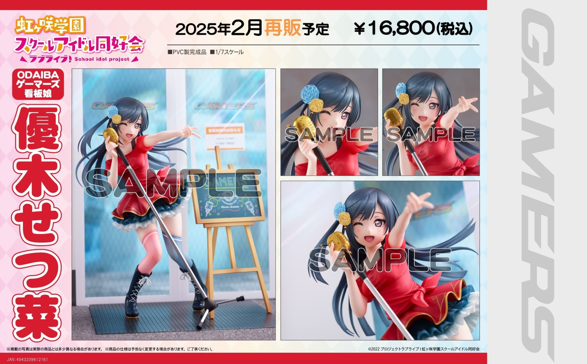 ゲーマーズより 「ラブライブ!虹ヶ咲学園スクールアイドル同好会」オフィシャルタイアップショップ ODAIBAゲーマーズ5周年記念 ODAIBAゲーマーズ看板娘「優木せつ菜」フィギュアの再販のお知らせ