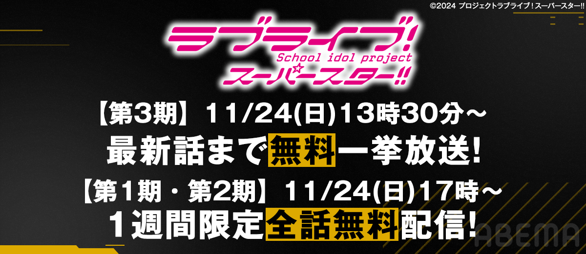 TVアニメ『ラブライブ!スーパースター!!』1期、2期、3期がABEMAにて一挙放送決定!
